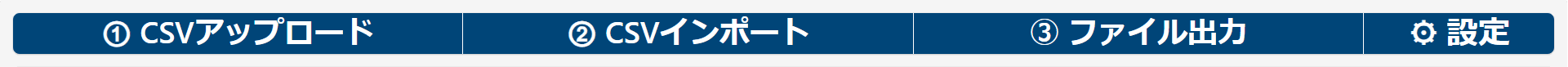 | 1 | CSVアップロード | クリックすると、CSVアップロード画面に移動する。 |