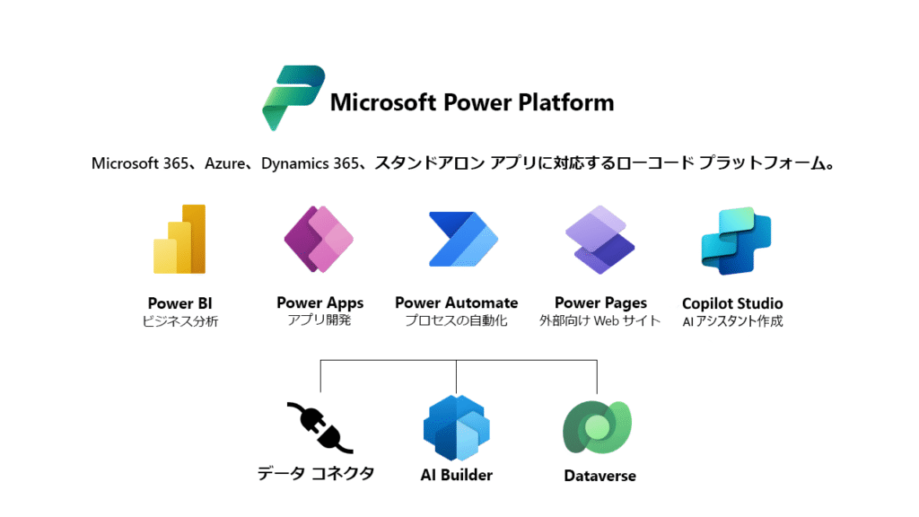 Power Platform (パワー・プラットフォーム)は、Microsoftが企業に提供、組織内のユーザーがアプリケーション構築、ワークフロー自動化、データ分析などソリューションを開発するためのローコードツール群。Power Apps、Power Automate、Power BI、Power Pages、Copilot Studioといったクラウドベースのサービスが含まれている。